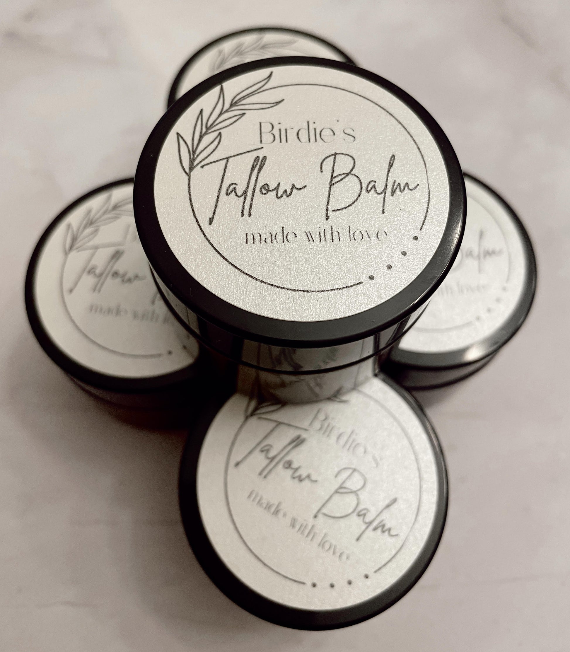 Tallow balms help aid SO many skin conditions, including cracked, calloused, dry skin, rashes, burning, itching, wrinkles, sun damage, eczema, acne, scars, cuts/abrasions, chapped lips, and the list goes on. Tallow balms allow your skin to repair itself with the natural oils that keep in the moisture and nutrients. Tallow contains vitamins A, D, E, K and B12, plus conjugated linoleic acid and niacin. Birdie's Tallow also contains Jojoba oil and Lavender oil for skin benefits, healing properties, and a nice (but gentle) scent.