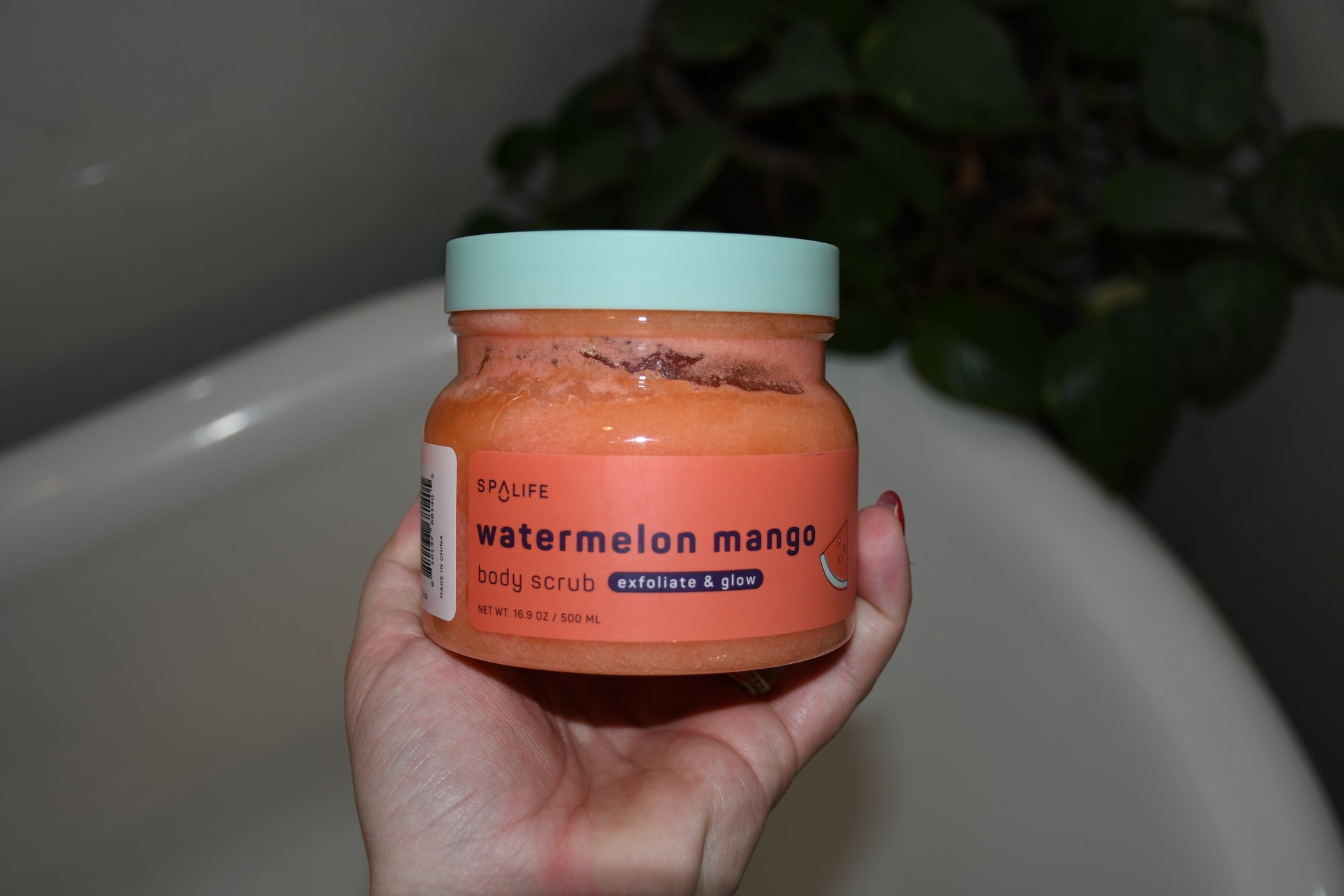 A Watermelon mango body scrub that gently exfoliates & nourishes, leaving skin feeling satin-smooth! Made with skin-strengthening watermelon mango for long-lasting hydration, this body scrub gently polishes skin, exfoliating with granular crystals to reveal visible radiance and a satiny-smooth appearance.